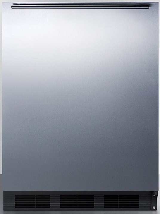 The FF7BKSSHHADA is a 32" high all-refrigerator with a full 5.5 cu.ft. capacity inside a slim 24" footprint. Designed for freestanding use, this model has a black cabinet and user-reversible stainless steel wrapped door. A thin handle with a 14mm diameter is mounted horizontally for a sleek, modern look. The FF7BKSSHHADA is ETL-S listed to NSF-7 standards for use in commercial establishments. For a built-in version of this unit, see the FF7BBISSHHADA. For more finish options, browse the entire FF7ADA Series.