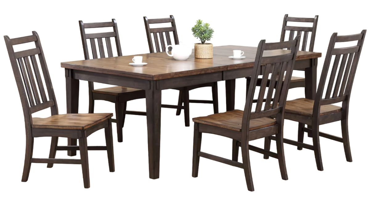 This dining table with butterfly leaf features a rustic two tone finish and matching chairs.Read More