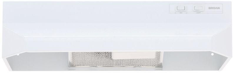The Broan 40000 series is made for a wide range installations and comes in a variety of appliance matching colors and widths. The durable under cabinet hood installs as 3-1/4 in. x 10 in. ducted opening only and ducts either vertically or horizontally. The hood features a fan designed for years of trouble free service, an easy to clean grease filter, a protective lamp lens that distributes light evenly over the cook-top and control switches for fan speed and light activation. Includes duct adapter with built-in damper.Read More
