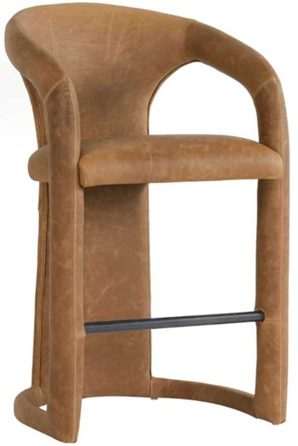Update your dining space with this counter stool featuring a chic silhouette forged from stainless steel and upholstered with top grain leather. Crafted with a durable wax finish, this leather offers premium water resistance and lasting durability. The curved back hugs and supports the body while a footrest offers additional stability and comfort.Read More