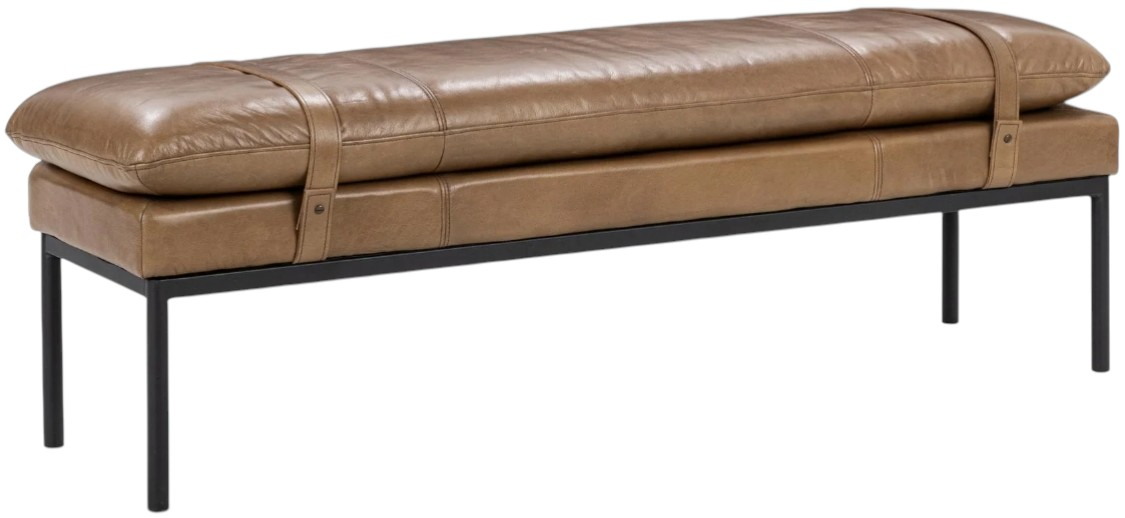 This top grain leather bench combines modern style with everyday function. Featuring a plush leather cushion secured with detailed strap accents and a sturdy black iron base, it adds warmth and structure to any space.Read More