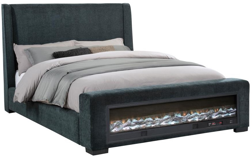 Elevate your bedroom with this sophisticated upholstered bed in a stunning dark blue fabric. Featuring a modern wingback headboard, this bed combines bold style with inviting comfort. The footboard boasts a visual flame box insert for a cozy ambiance, complete with 13 color options, adjustable brightness levels, and a wireless remote control.Read More