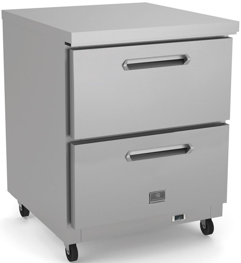 2-drawer refrigerator counter top with exterior back panel in aluminum, exterior bottom panel in galvanized steel, exterior side and top panel in 430 stainless steel; interior back, top and bottom panels in 304 stainless steel.Read More