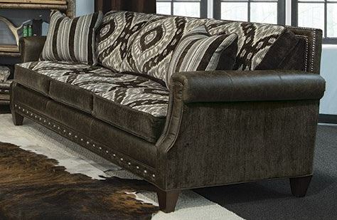 Accent your living area with Beckett Sofa. Dark brown, gray and off-white upholstery with decorative nail head trim give this sofa an alluring appeal. With its beautiful design, this piece is sure to make a statement in your living room.Read More