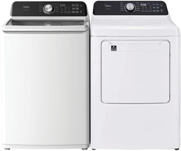 Midea® White Laundry Pair with 4.4 Cu. Ft. agitator top load washer and 7 Cu. Ft. front load electric dryer.Read More