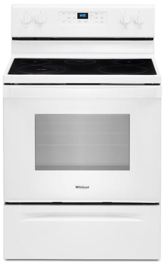 This Whirlpool® electric range with a dual element stove top helps you get dinner to the table. This fingerprint resistant range allows you to skip preheating for favorites like pizza with Frozen Bake™ technology. This self cleaning oven also prevents cooked food from getting cold with a Warm Zone on the cooktop and the Keep Warm setting in the oven.Read More